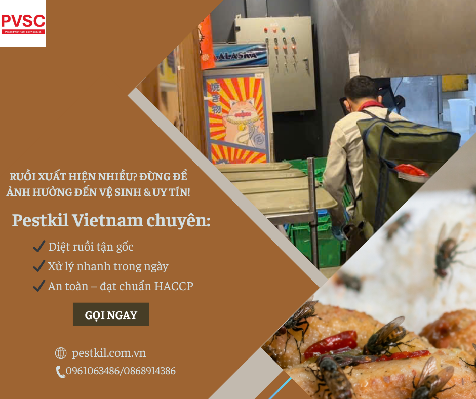 Cần diệt ruồi gấp? Pestkil Vietnam cung cấp dịch vụ kiểm soát ruồi chuyên nghiệp cho nhà máy, F&B, kho xưởng. Xử lý nhanh, đạt chuẩn HACCP, hiệu quả lâu dài.