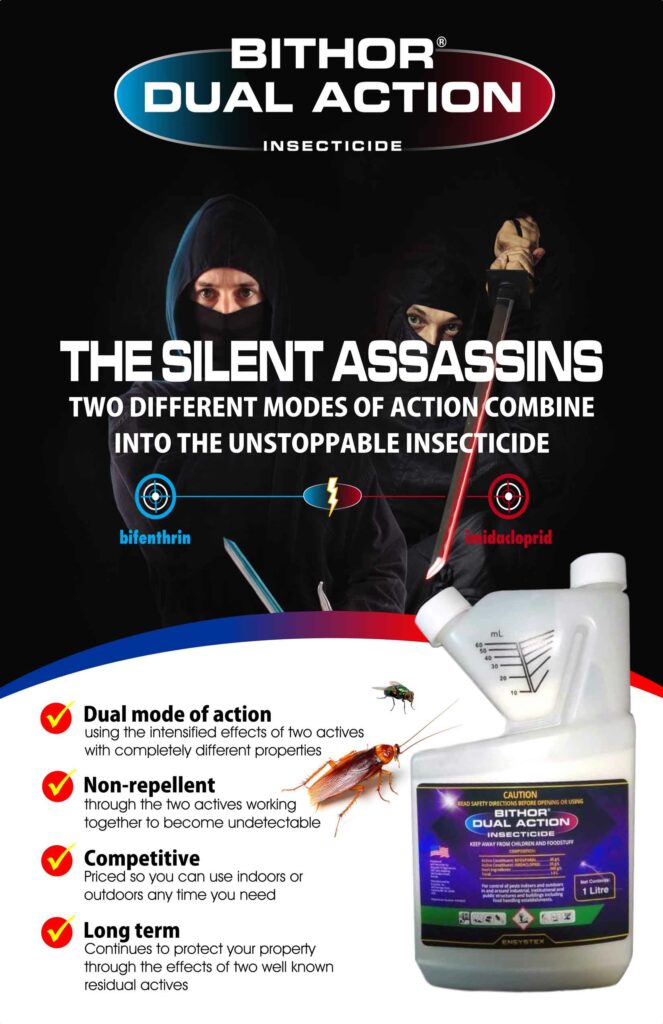 Sự kết hợp độc đáo này giúp Bithor Dual Action Insecticide vừa diệt tức thì, vừa duy trì hiệu quả lâu dài, đồng thời hạn chế tối đa tình trạng côn trùng kháng thuốc.