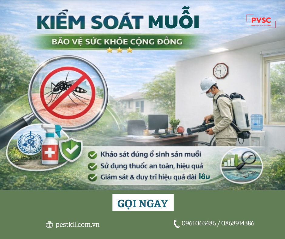 Muỗi không chỉ gây khó chịu trong sinh hoạt hằng ngày mà còn là trung gian truyền nhiều bệnh nguy hiểm như sốt xuất huyết, Zika, sốt rét, viêm não Nhật Bản… Việc phun thuốc diệt muỗi nếu thực hiện sai kỹ thuật, không theo quy trình khoa học sẽ dẫn đến hiện tượng kháng thuốc , tái nhiễm nhanh, ảnh hưởng sức khỏe và môi trường. Nhận thức rõ điều đó, PVSC xây dựng và triển khai quy trình phun thuốc diệt muỗi đạt chuẩn IPM, đảm bảo hiệu quả kiểm soát muỗi toàn diện , an toàn , bền vững , đúng quy định y tế và môi trường.